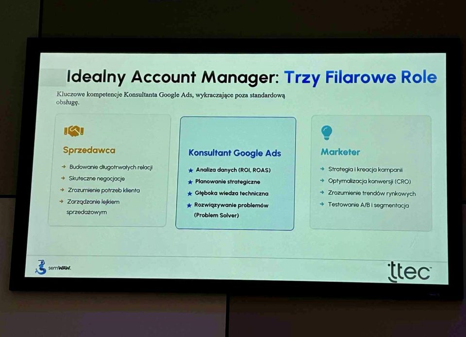 Istotnym elementem wystąpienia była także analiza realnego ROAS-u oraz skuteczności produktów, które – odpowiednio wdrożone – pozwalają podejmować trafniejsze decyzje reklamowe. Prelegent przekonywał, że połączenie danych marketingowych z CRM-em to fundament działań, które prowadzą do wzrostu sprzedaży, a nie jedynie do zwiększania ruchu.