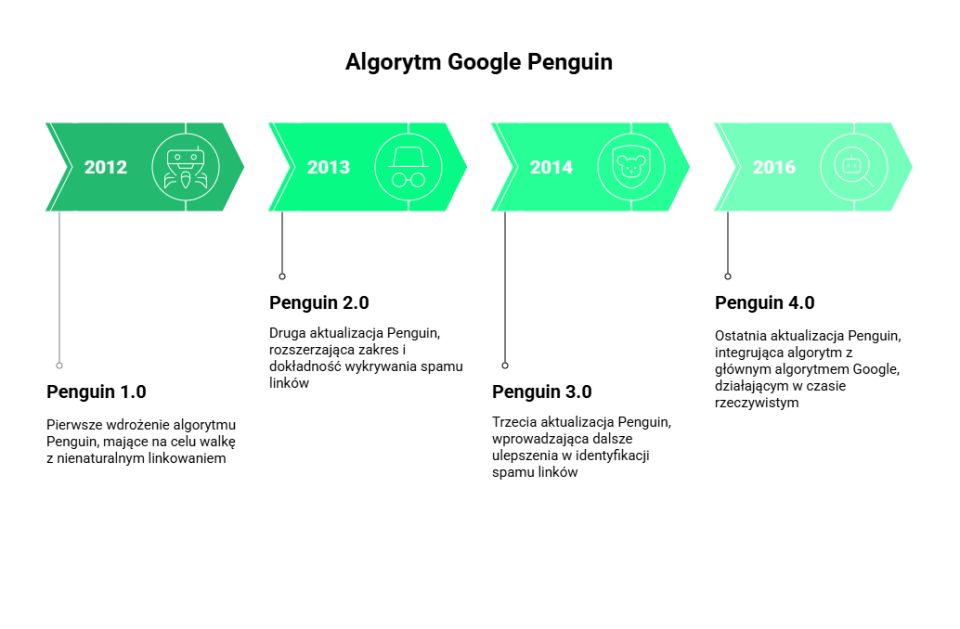 Aktualizacja Google Penguin została wprowadzona po raz pierwszy 24 kwietnia 2012 roku. Jej celem było przeciwdziałanie praktykom spamu linkowego i poprawienie jakości wyników wyszukiwania.